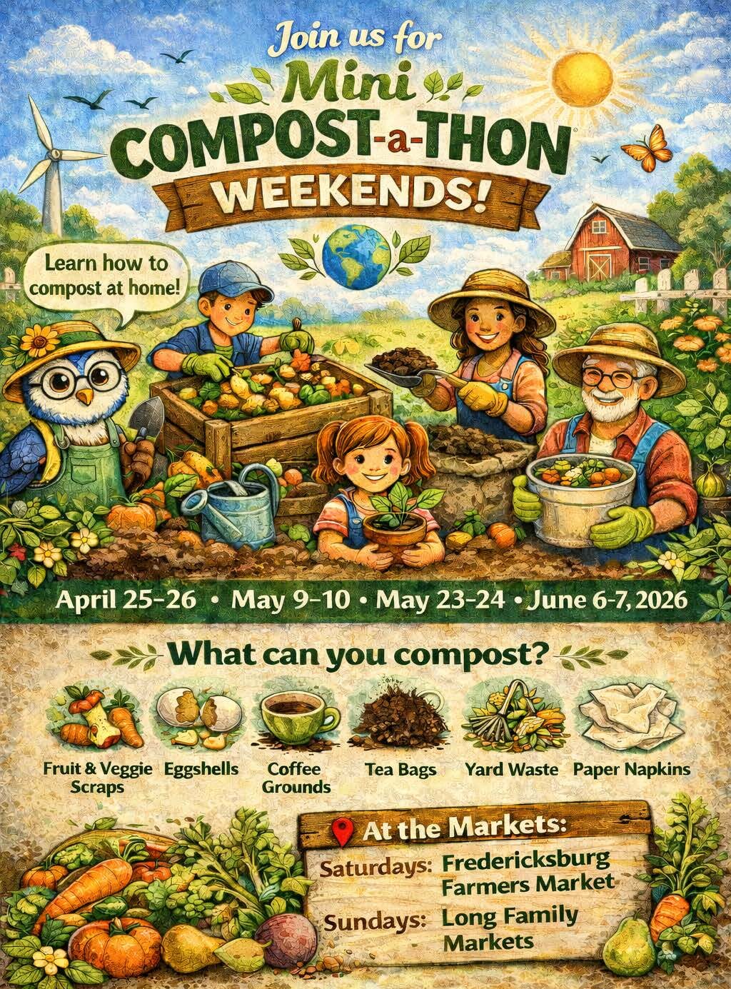 The Mini Compost-a-Thon is an excellent opportunity to learn about composting and receive a free compost bin! You can visit any of these events to get a free countertop food scrap bin, learn about composting, and register to receive a free compost bin. Events for Spring 2026 are currently being finalized and will be posted soon!