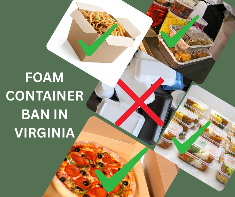 In 2021, the Virginia General Assembly enacted legislation that prohibits the use of Expanded Polystyrene (EPS). This ban applies to all food vendors, defined as any establishment that offers prepared food for public consumption, whether on-site or for takeout.